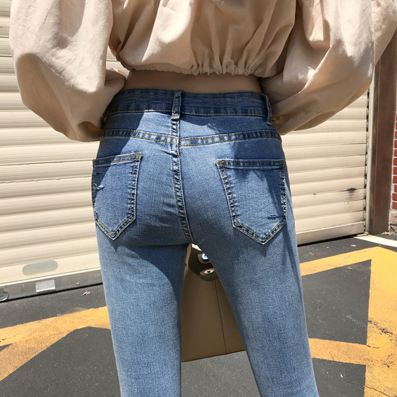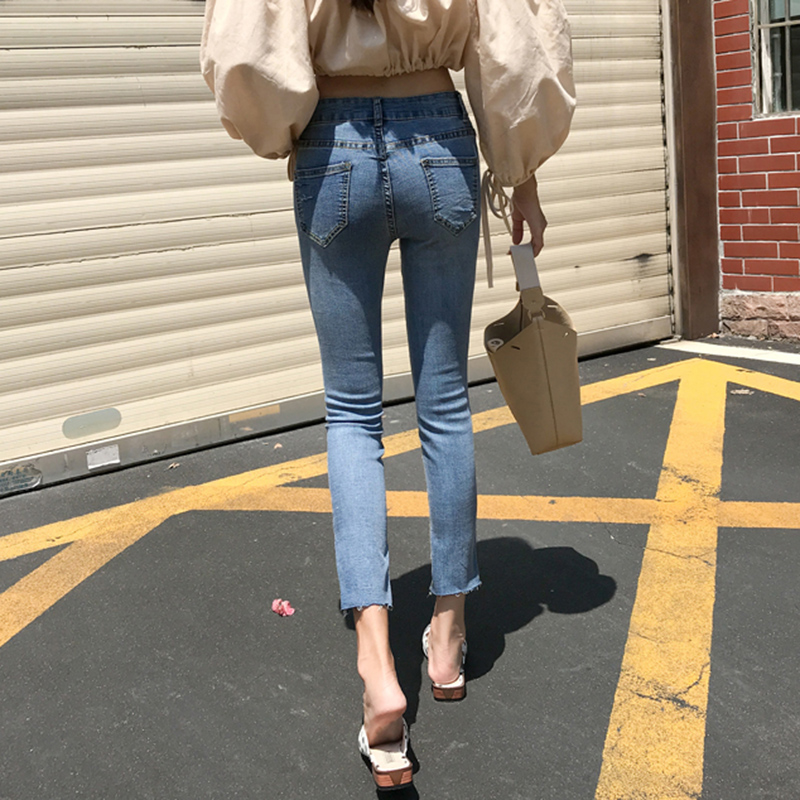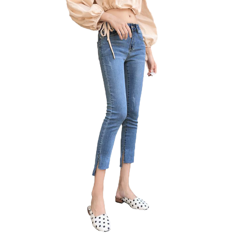 九分褲女秋裝新款韓版學生高腰彈力開叉牛仔褲休閑緊身鉛筆褲子潮
