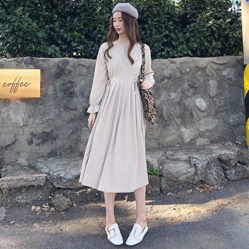 / 高領范成熟女裝連衣裙秋裝2018新款氣質閃閃亮絲收腰a字大擺裙子