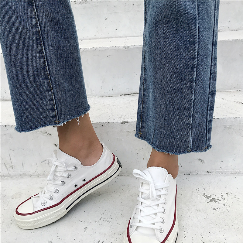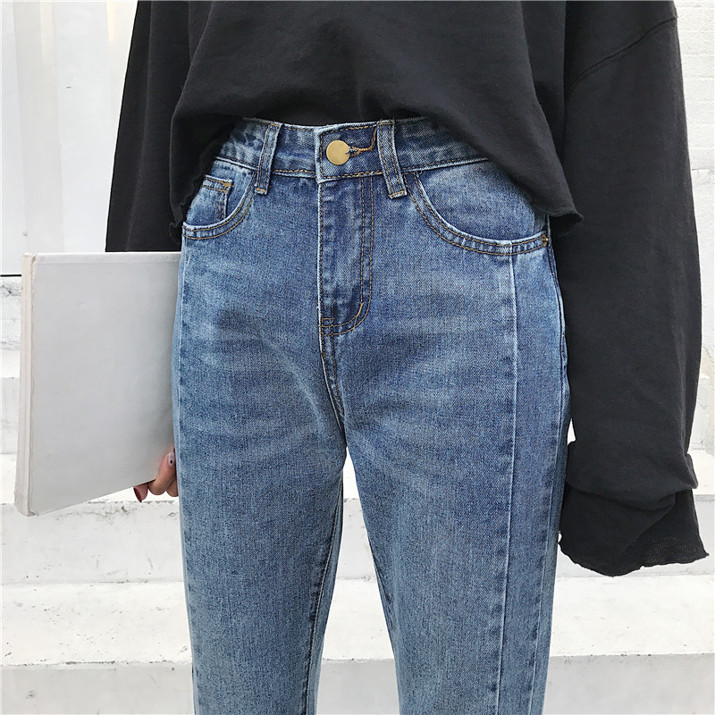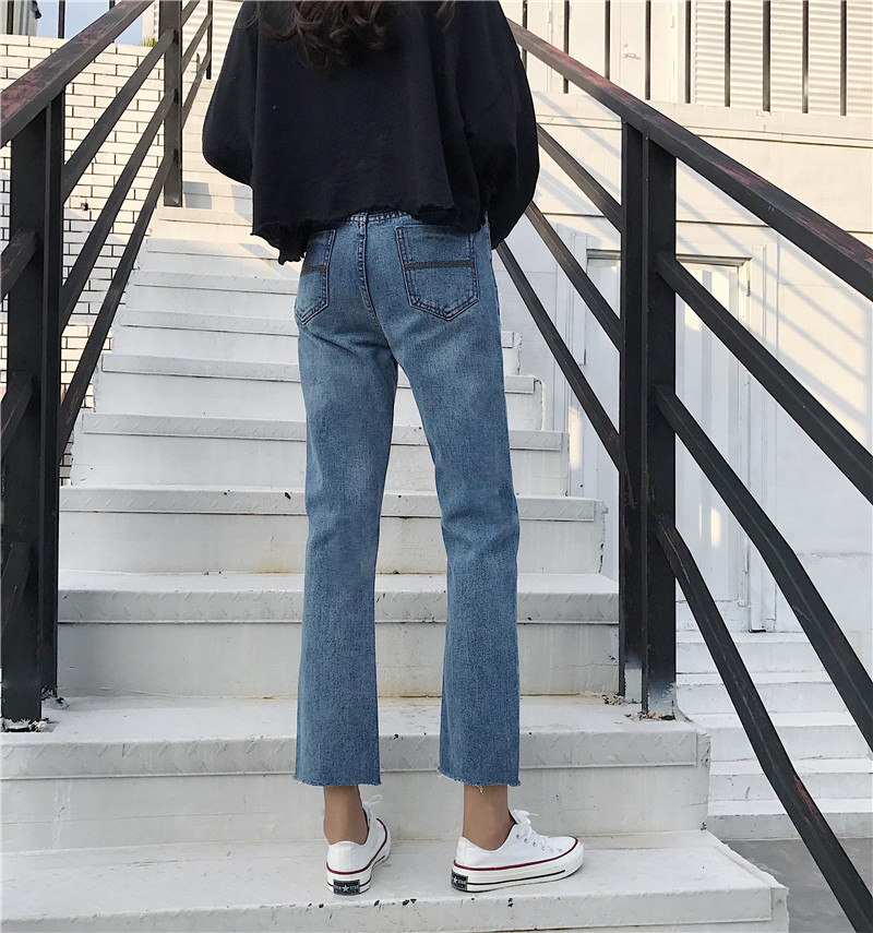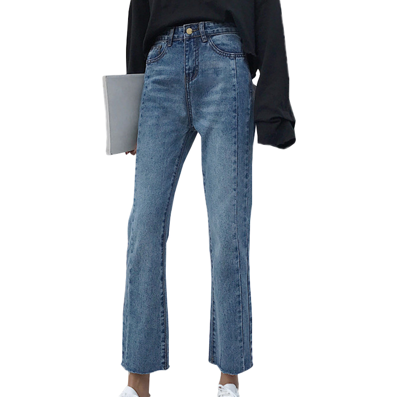 秋裝女2018新款 高腰寬松顯瘦學生直筒九分喇叭牛仔闊腿褲子女夏