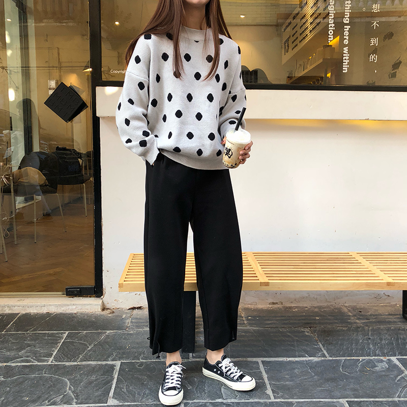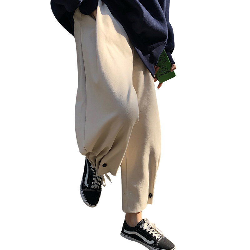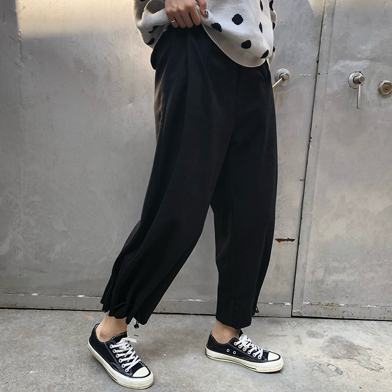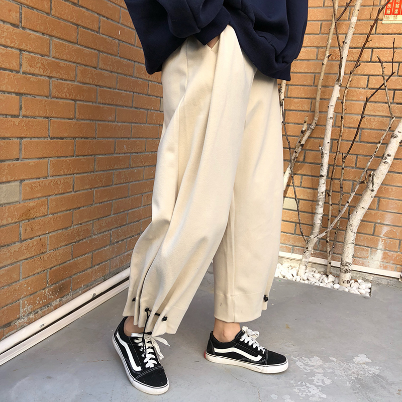 / 秋冬女裝韓版寬松抽繩闊腿褲休閑褲高腰呢子直筒褲九分褲學生褲子