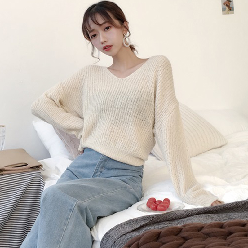 / 早秋2018新款女裝復古氣質交叉V領兩穿長袖毛衣時尚百搭修身上衣