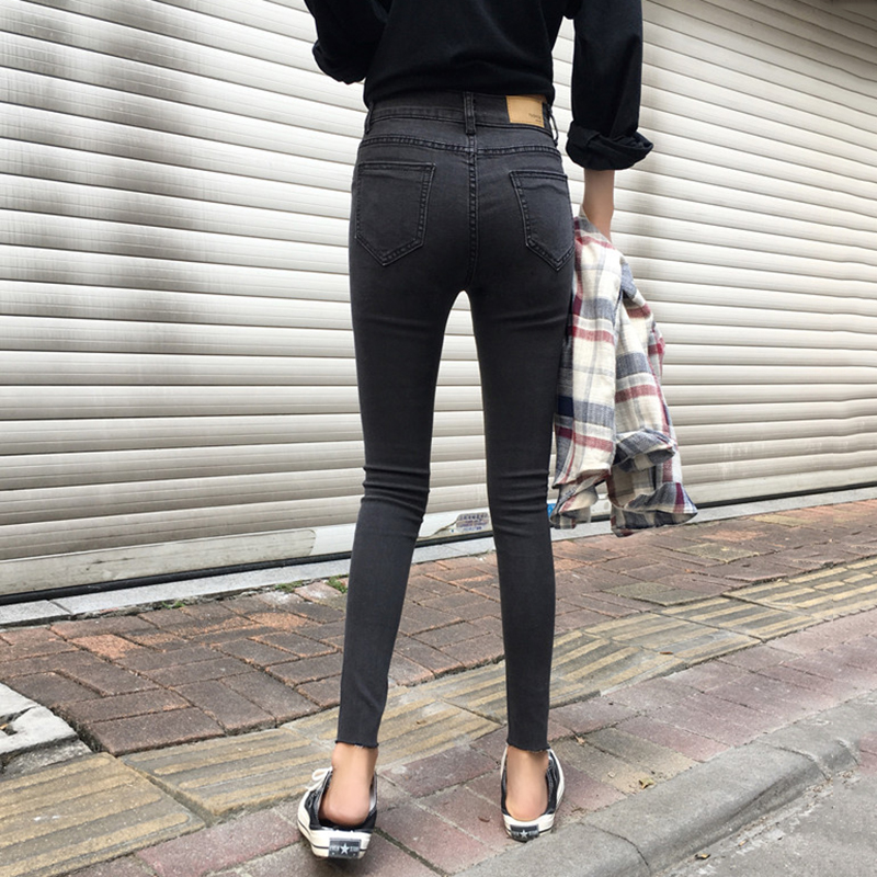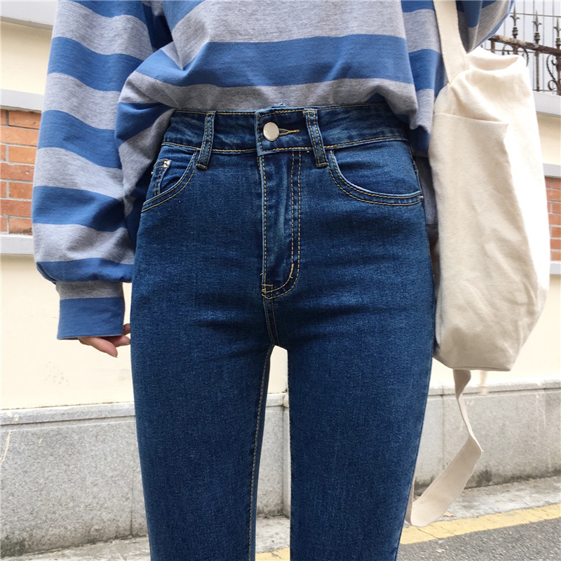 復古高腰牛仔褲女2018秋裝新款修身顯瘦小腳鉛筆褲學生打底緊身褲