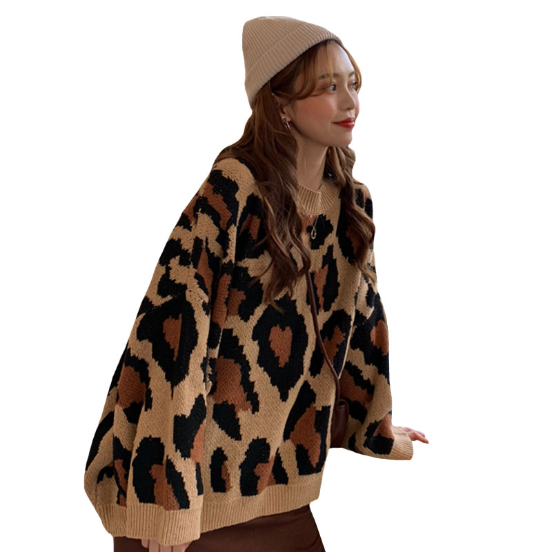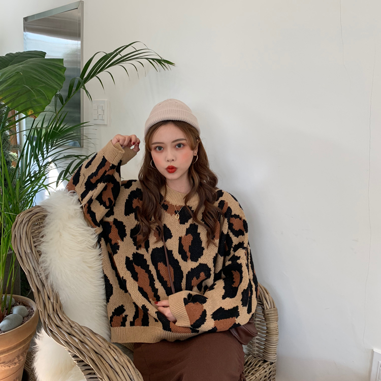 / 秋冬女裝韓版港味復古豹紋寬松慵懶風針織衫網紅套頭毛衣上衣外套