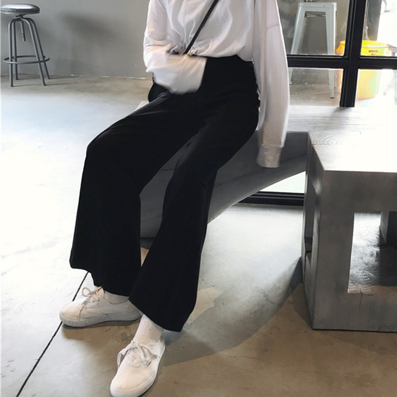 褲子女秋季2018新款寬松高腰墜感闊腿褲學生排扣黑色休閑長褲女裝