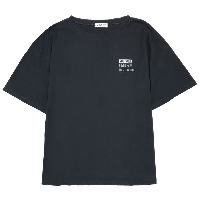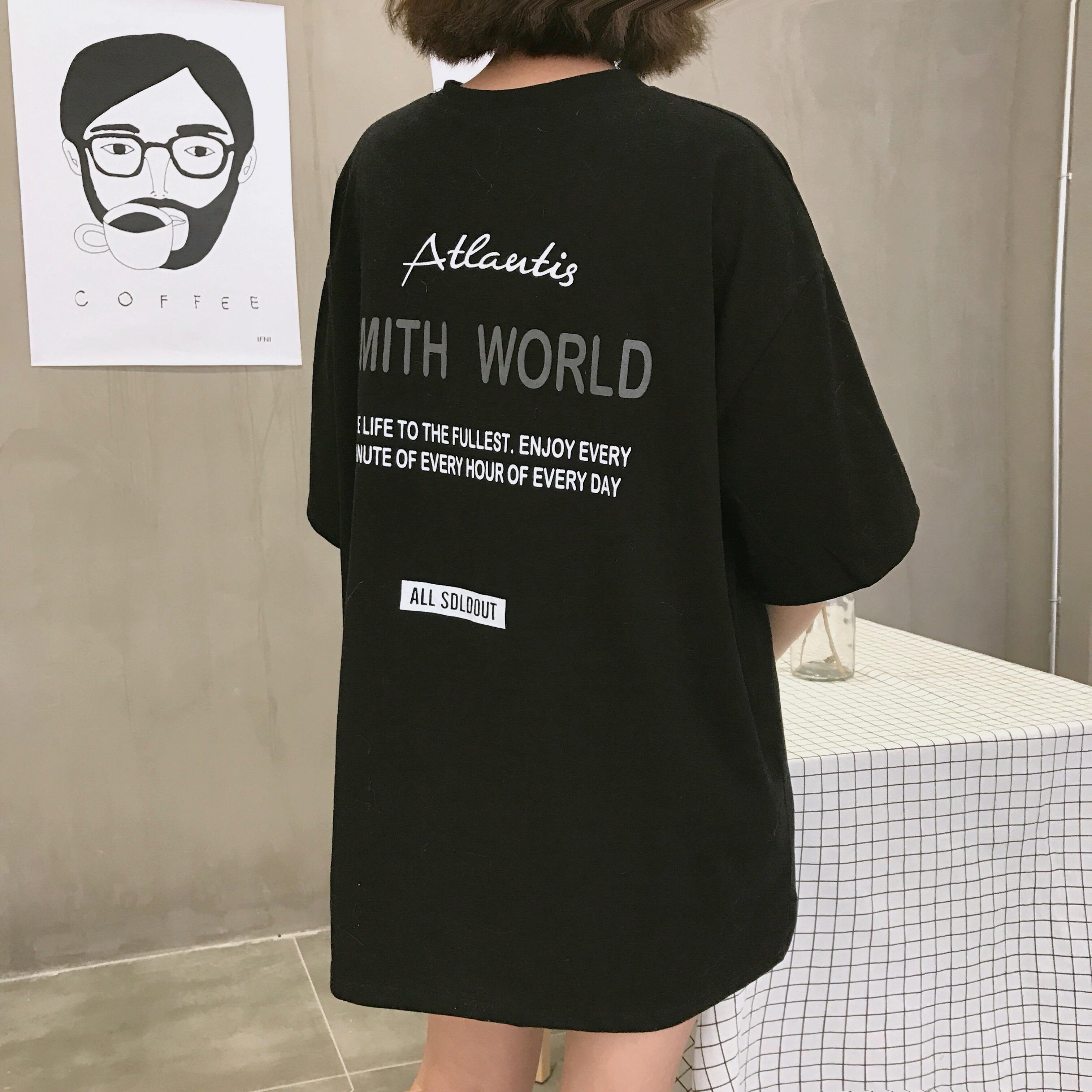 / 夏季新款女裝中長款簡約復古字母印花寬松顯瘦學生短袖T恤上衣女
