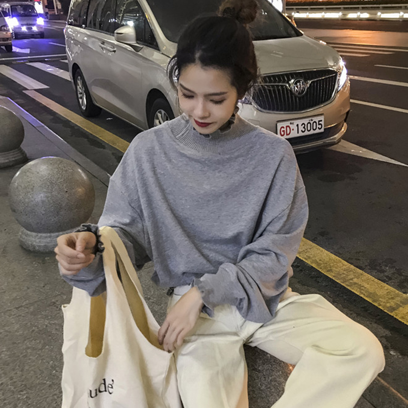 / 慵懶毛衣秋裝女2018新款長袖寬松加絨衛衣學生木耳邊高領黑色外套
