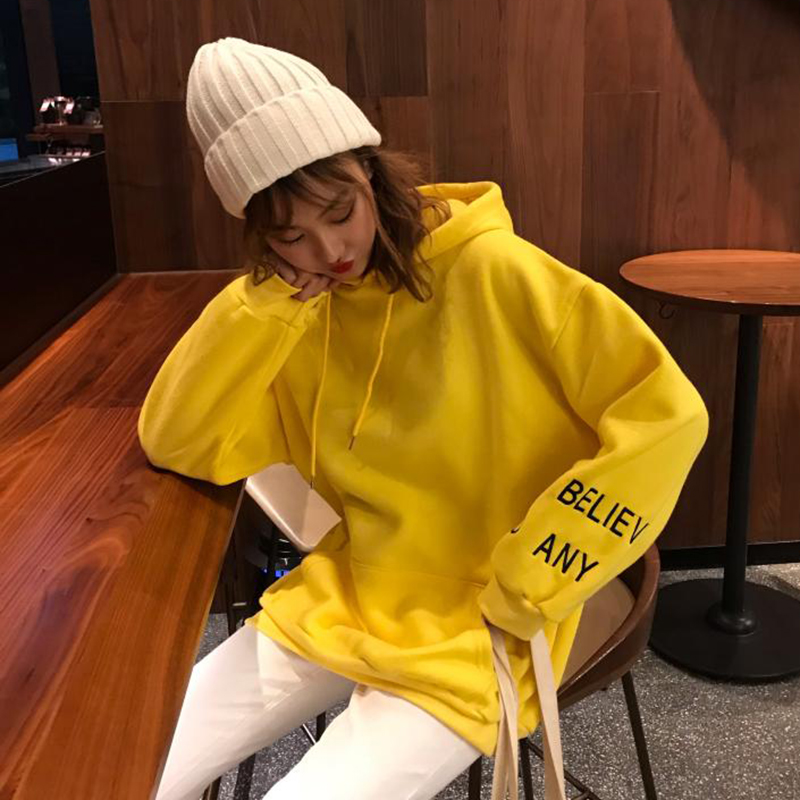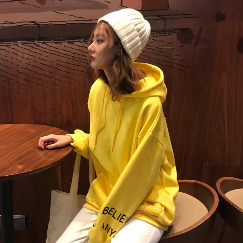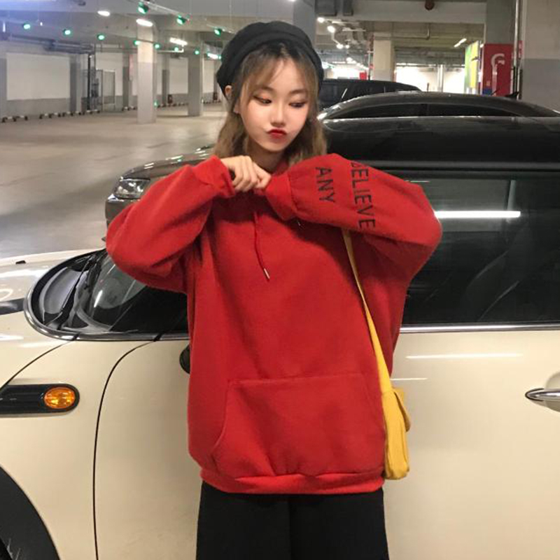 / 韓版chic加絨連帽衛衣秋冬2018新款女裝慵懶寬松長袖刺繡上衣外套