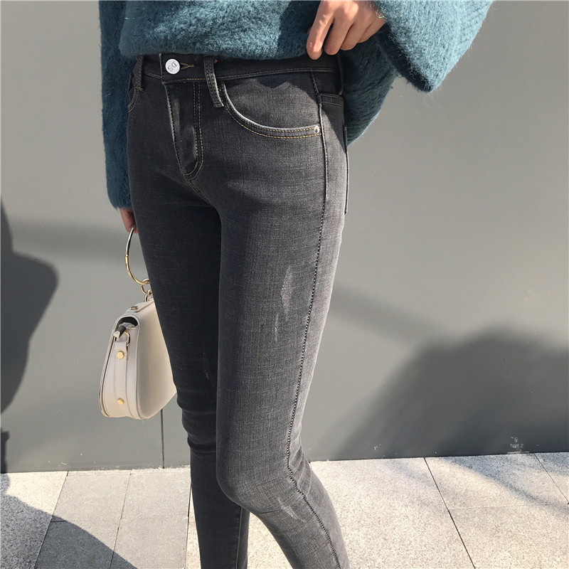 牛仔褲秋冬女2018新款顯瘦加厚保暖緊身小腳鉛筆褲修身高腰長褲子
