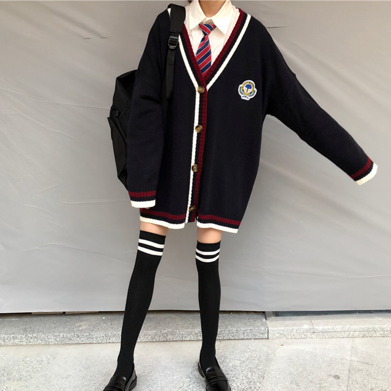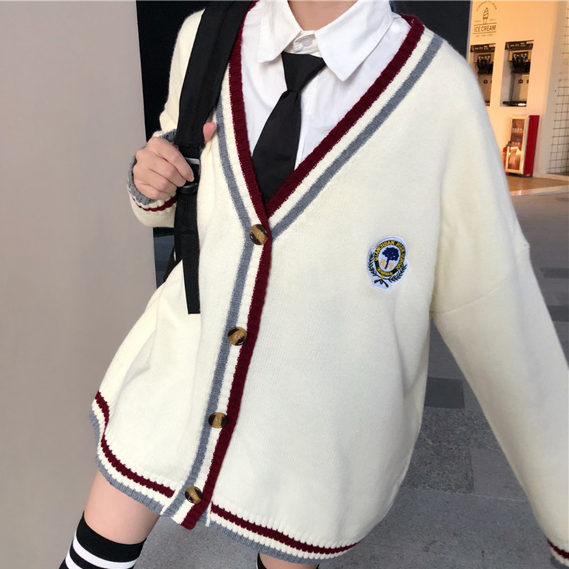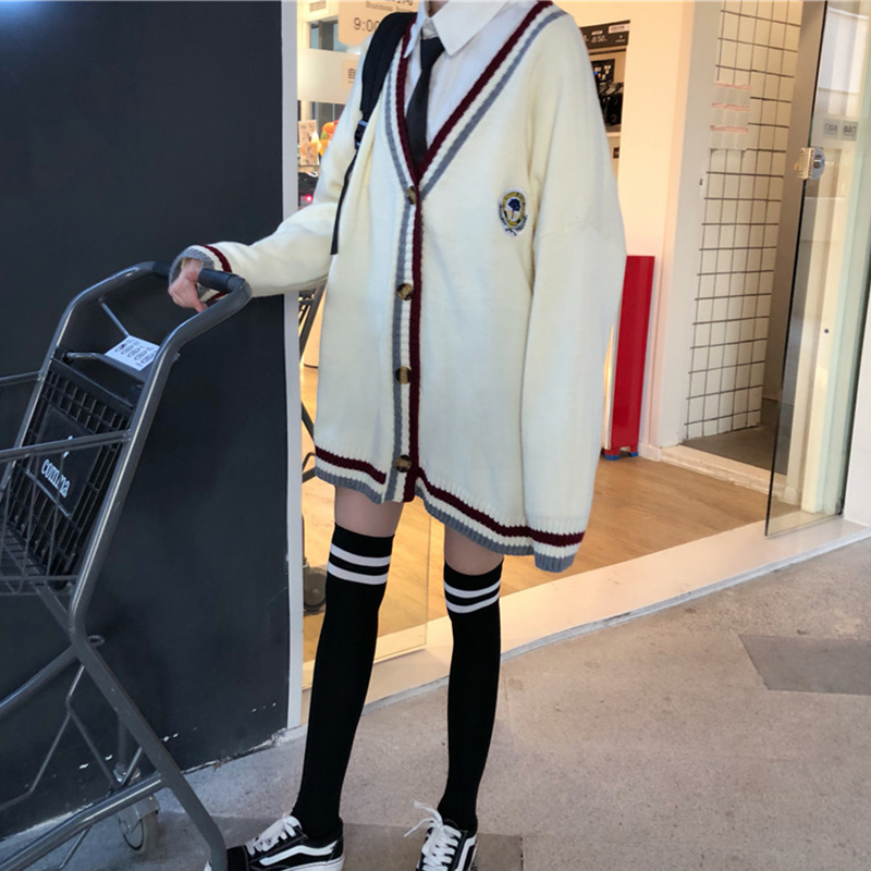 / 學院風兩件套秋裝女2018新款寬松針織衫毛衣外套長袖領帶襯衫上衣