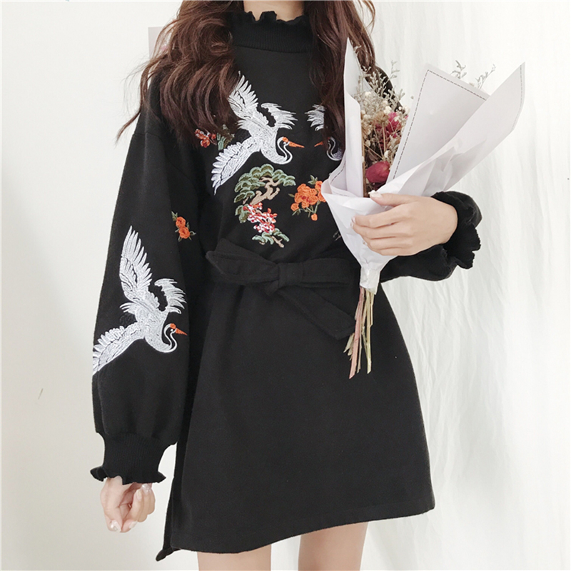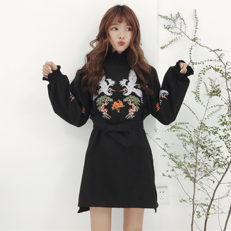 慵懶風上衣女長袖秋冬裝2018新款韓版寬松呢子外套刺繡高領衛衣潮