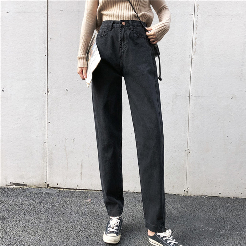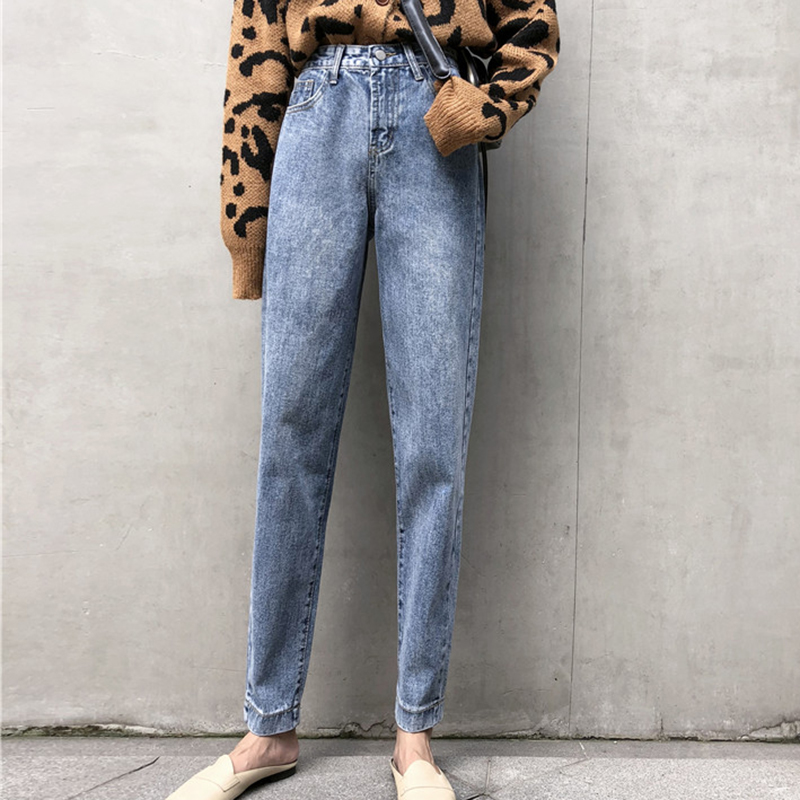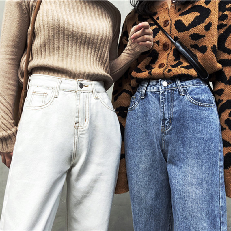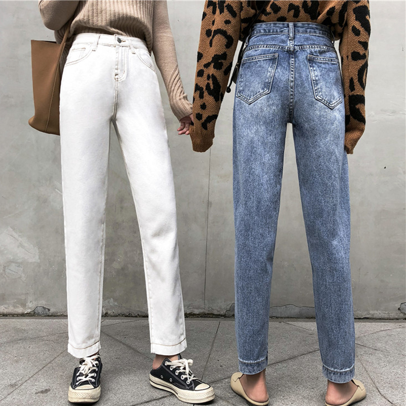 / 韓版白色牛仔褲女chic寬松高腰哈倫直筒褲秋裝新款學生休閑長褲子