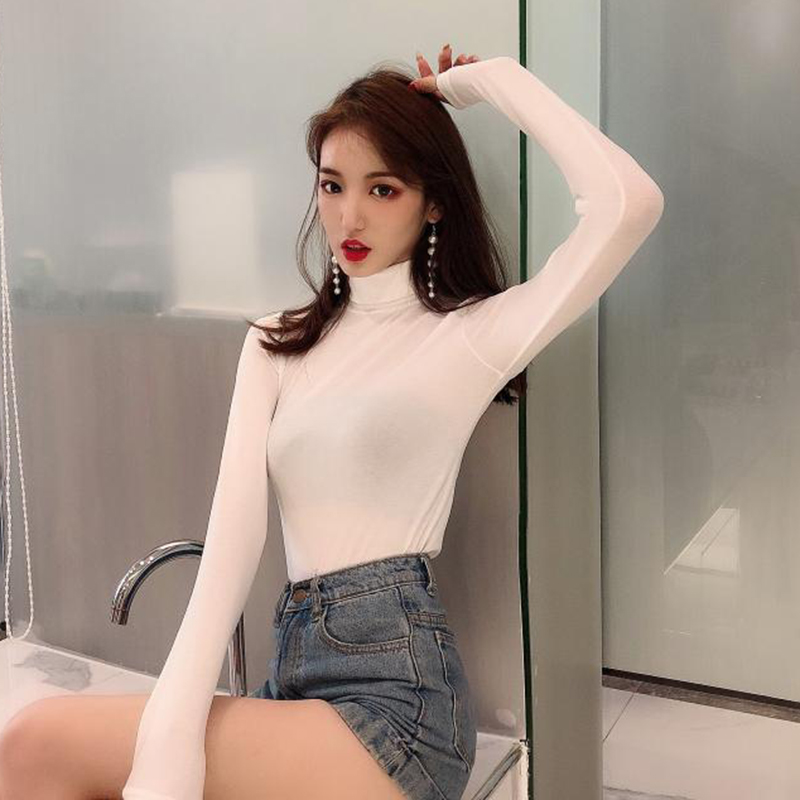 秋裝女2018新款韓版修身高領打底衫上衣氣質簡約長袖純色套頭T恤