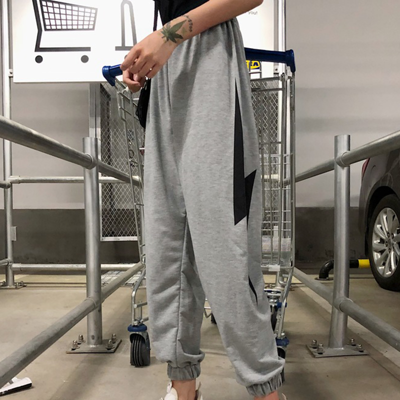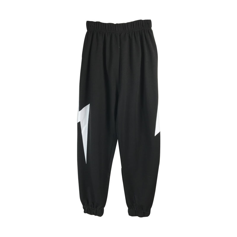 休閑褲女夏季新款韓版女裝閃電圖案束腳九分運動褲百搭寬松哈倫褲