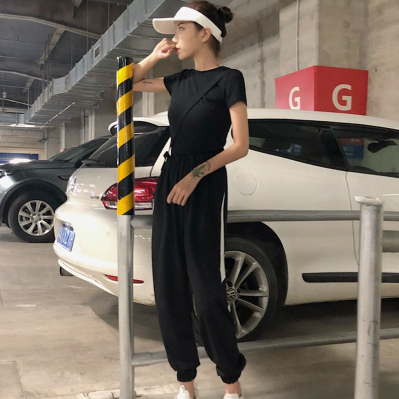 / 休閑褲女夏季新款韓版女裝閃電圖案束腳九分運動褲百搭寬松哈倫褲