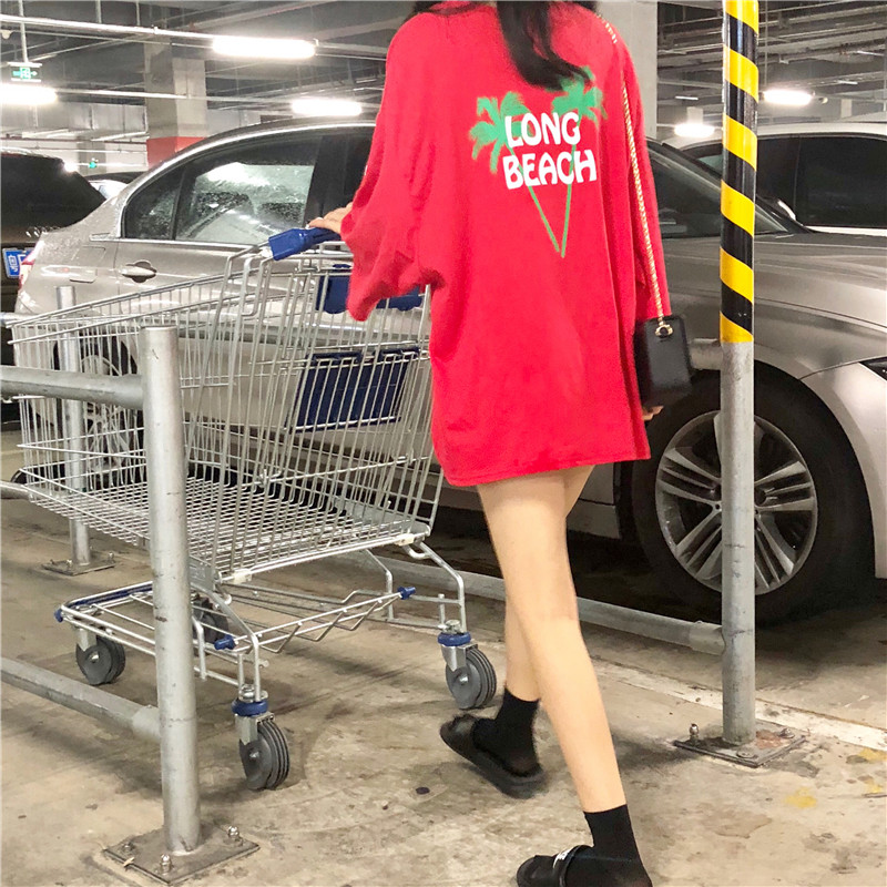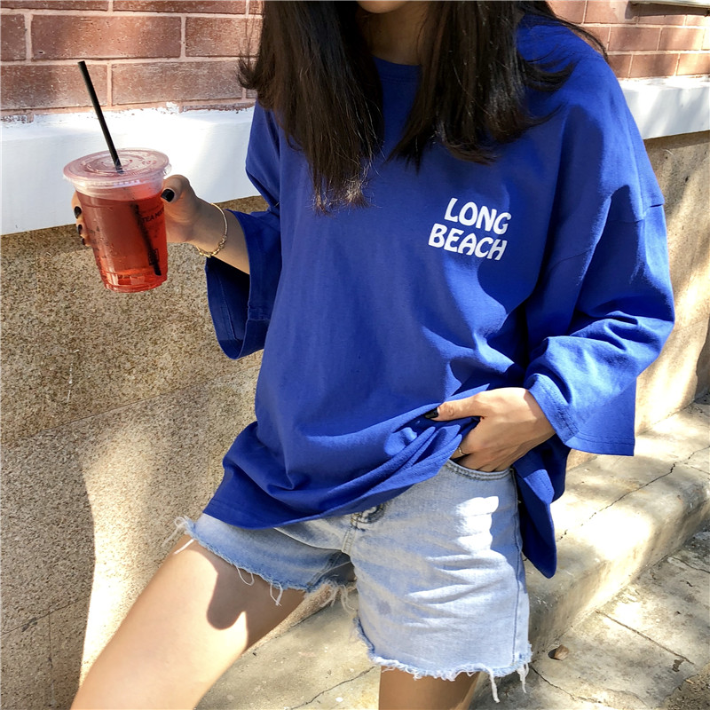 / 新款夏季韓版女裝前后字母印花九分袖T恤休閑百搭寬松圓領上衣女