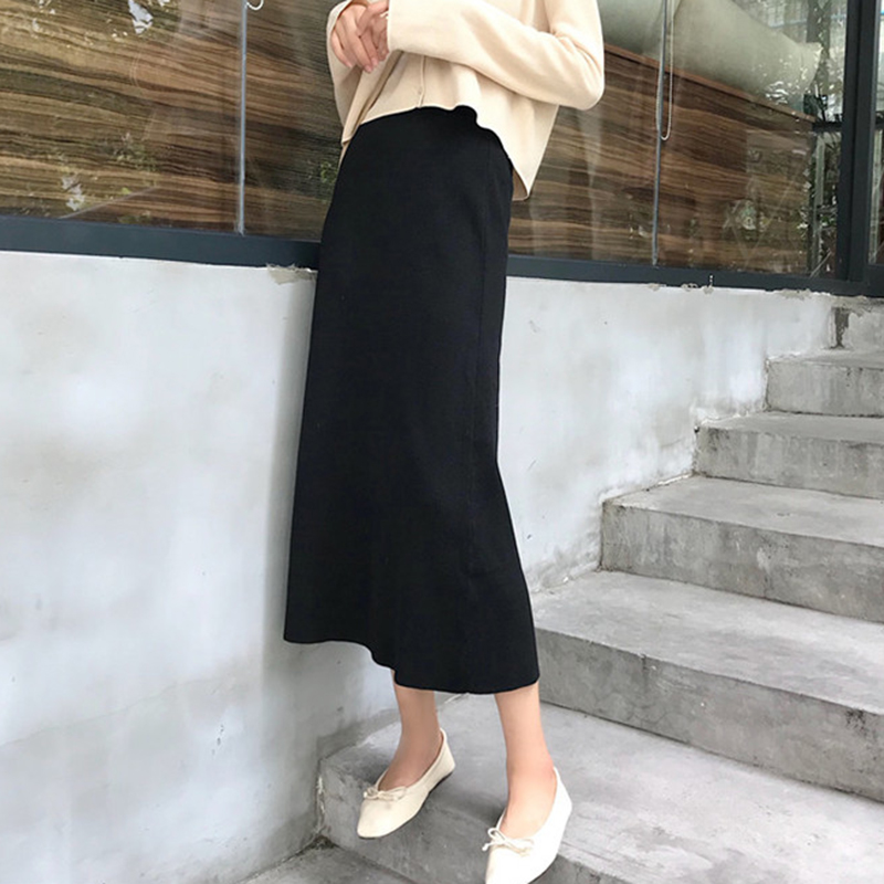 復古黑色中長針織裙秋裝女2018新款韓版高腰顯瘦A字裙氣質半身裙