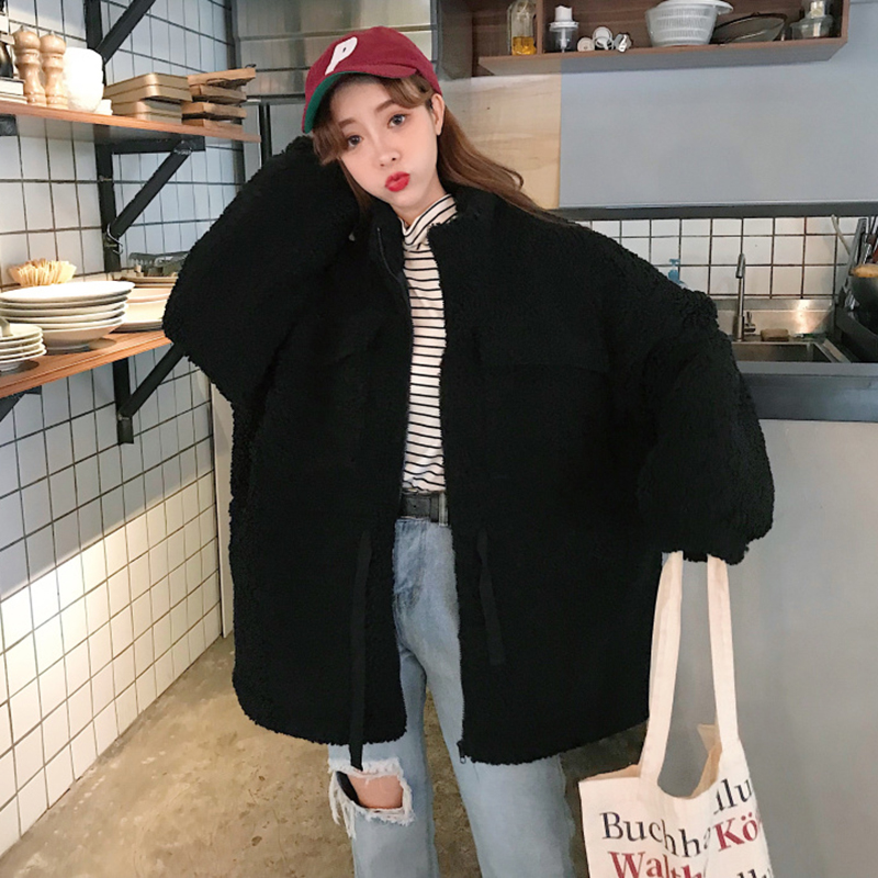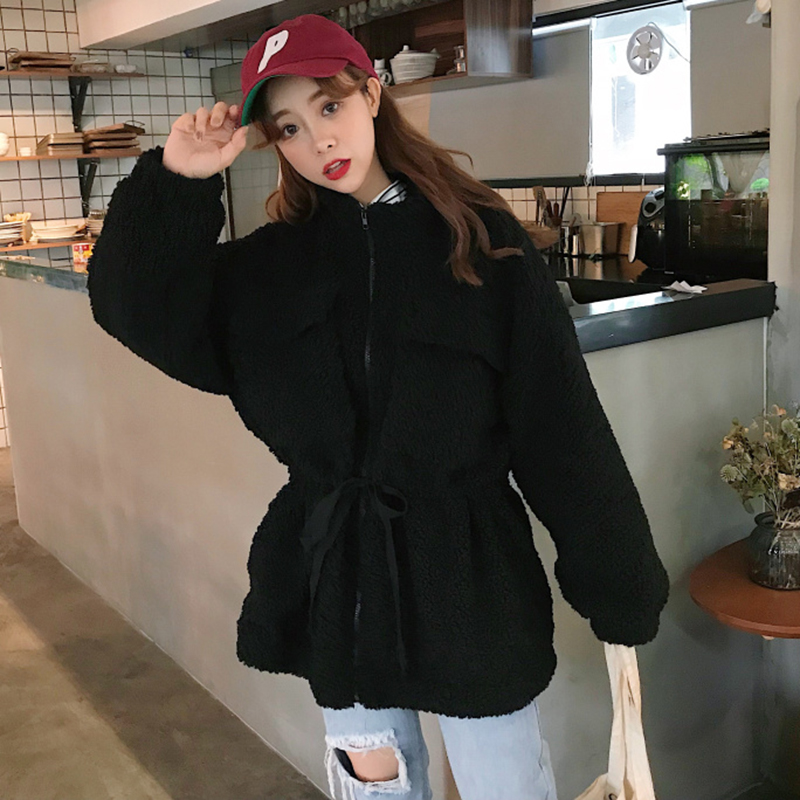 / 秋冬女裝2018新款學生羊羔毛棉襖外套韓版寬松長袖系帶收腰棉衣服