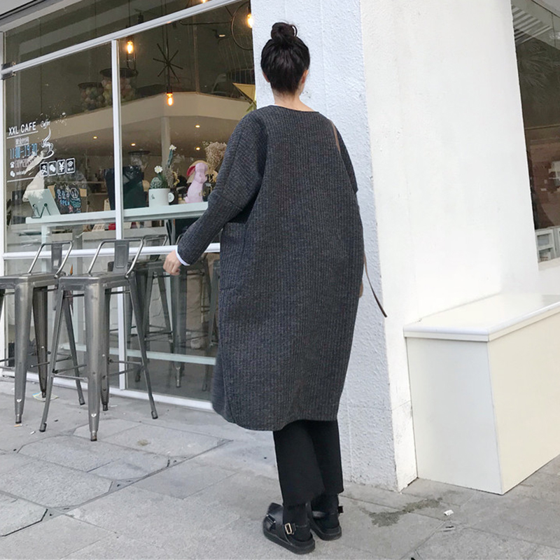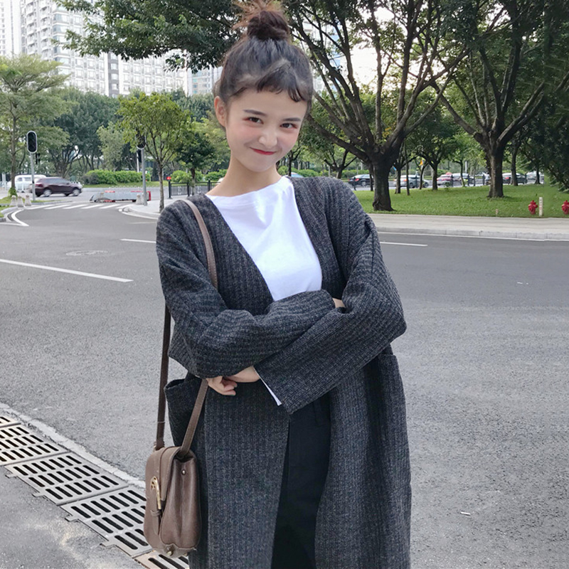 / 2018秋裝新款韓版純色寬松外套開衫中長款開叉上衣休閑長袖大衣女