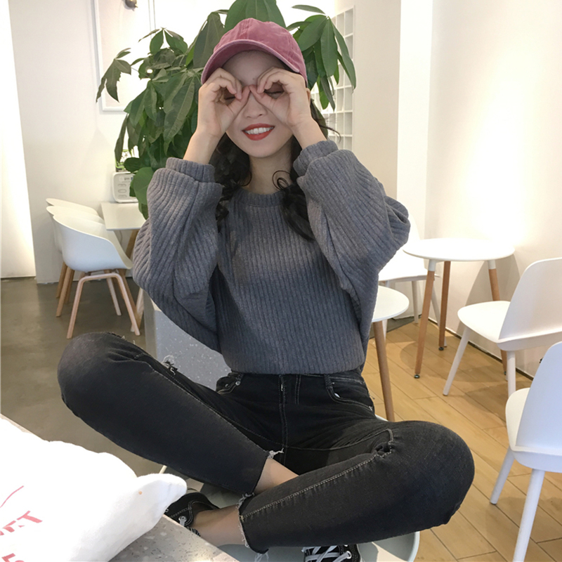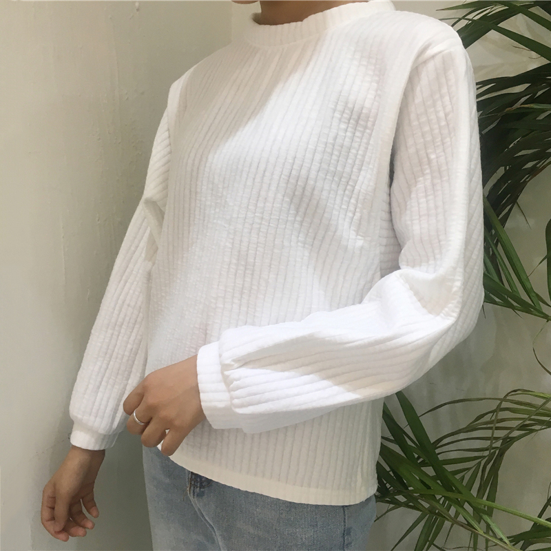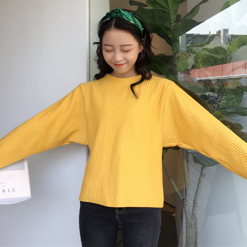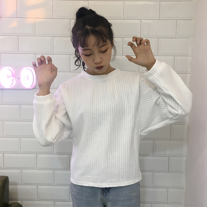 / 簡約白色休閑衛衣秋裝女新款韓版寬松蝙蝠長袖坑條上衣學生外套潮