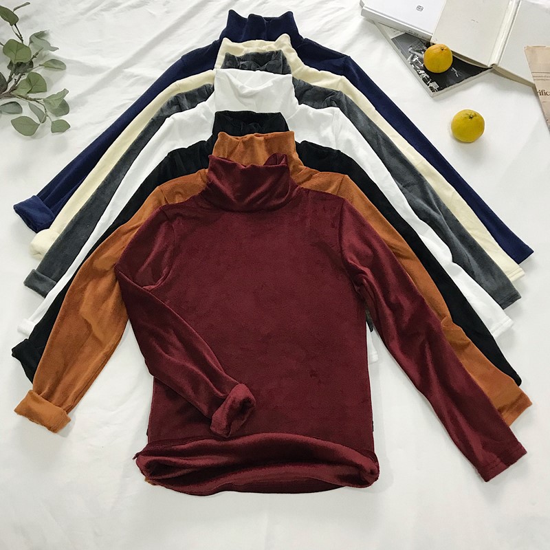 / 秋冬韓版修身顯瘦加厚加絨百搭保暖絲絨高領打底衫長袖T恤上衣女