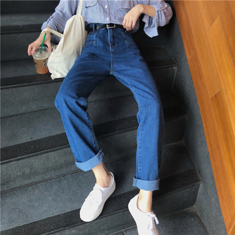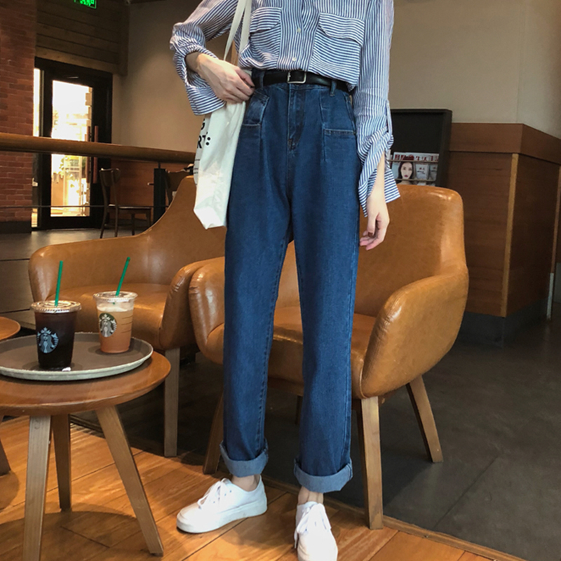 復古寬松顯瘦直筒褲女學生秋裝藍色牛仔褲子港味高腰2018新款長褲