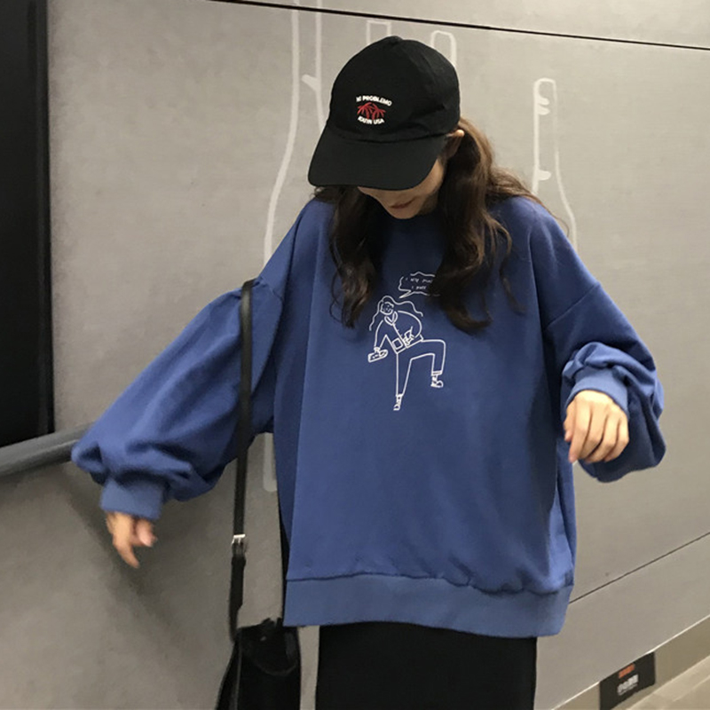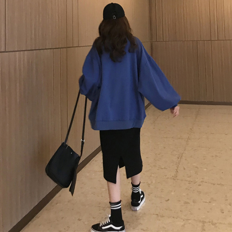 早秋新款卡通印花寬松長袖套頭衛衣女裝后開叉a字半身裙子兩件套
