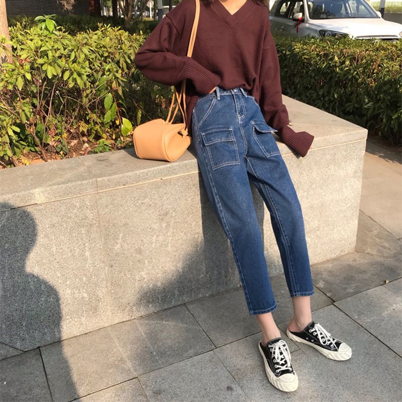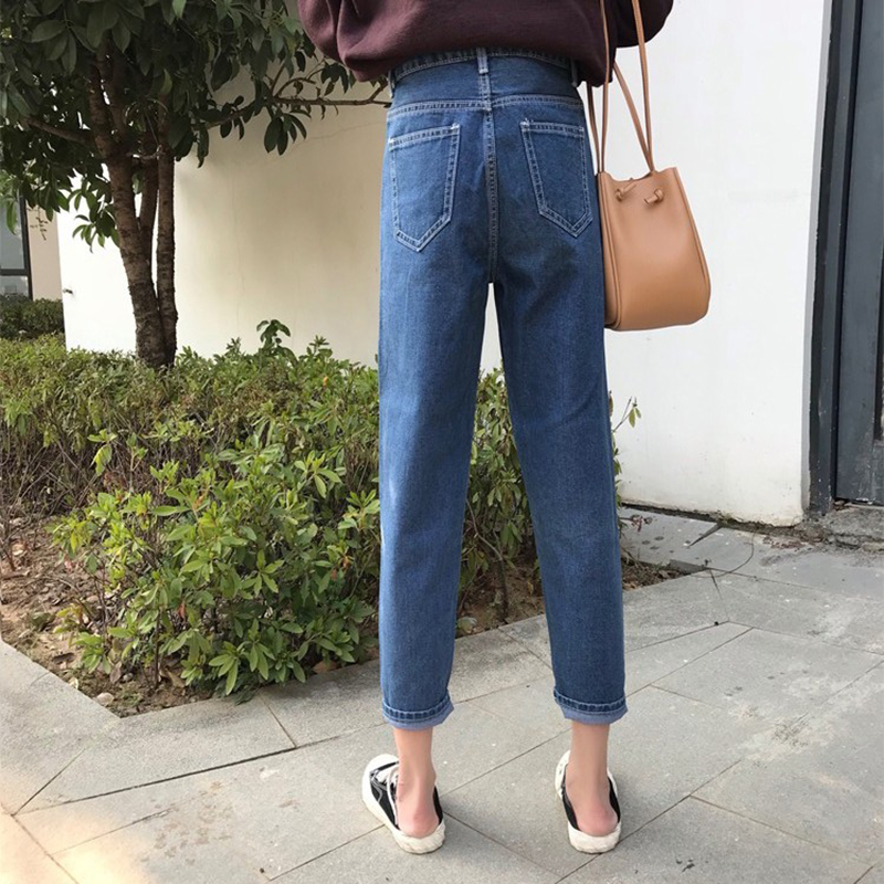 / 怪味少女高腰顯瘦牛仔褲秋冬裝新款學生復古寬松九分直筒休閑褲子