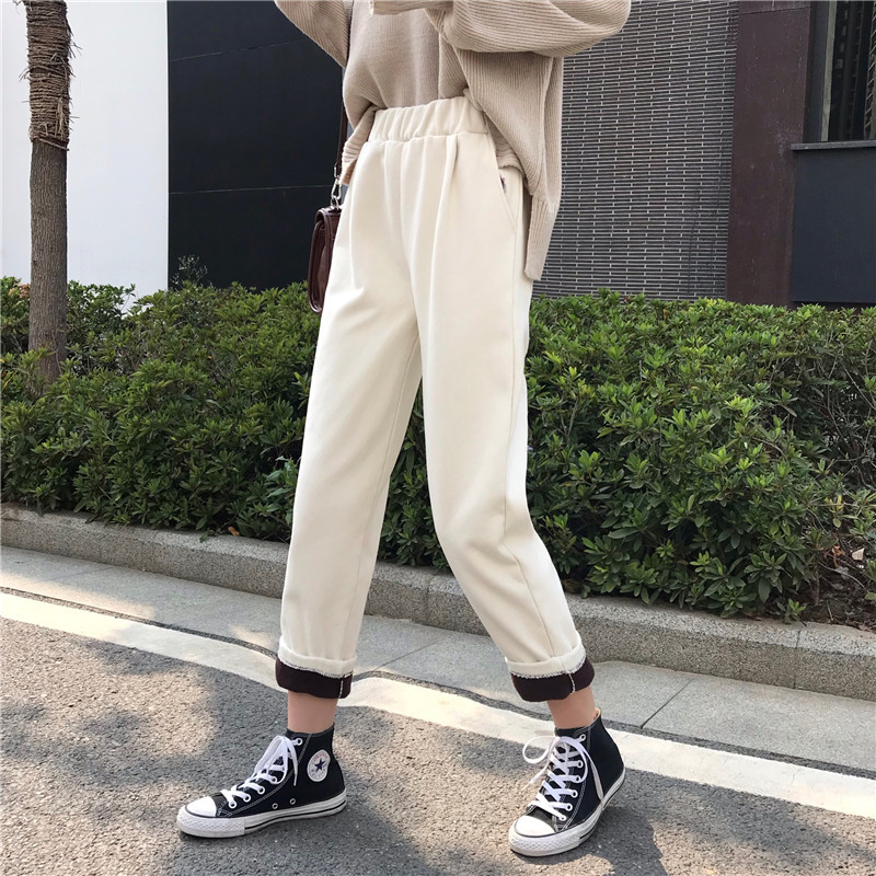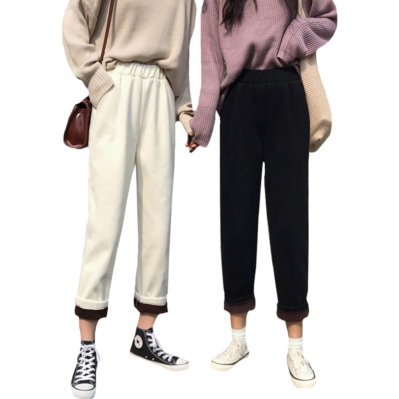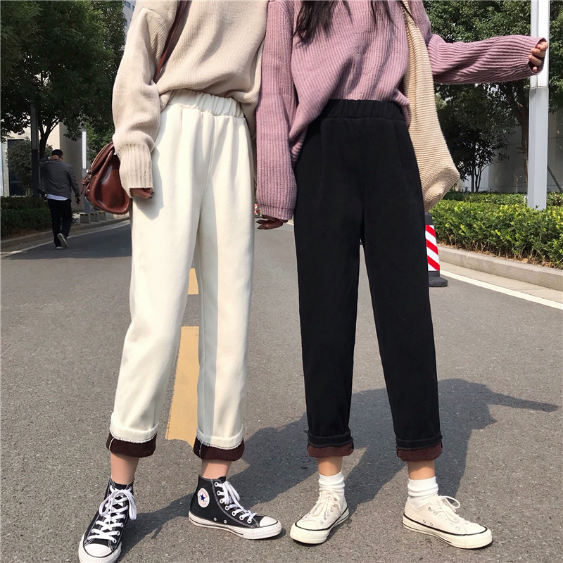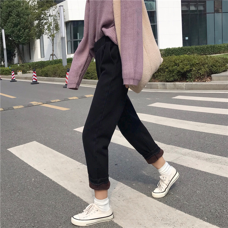 / 秋冬韓版寬松百搭加絨加厚牛仔褲高腰闊腿褲直筒褲長褲學生褲子女