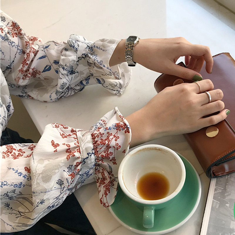 / 碎花襯衫秋裝新款韓版寬松喇叭袖雪紡上衣仙氣質顯瘦V領長袖襯衫