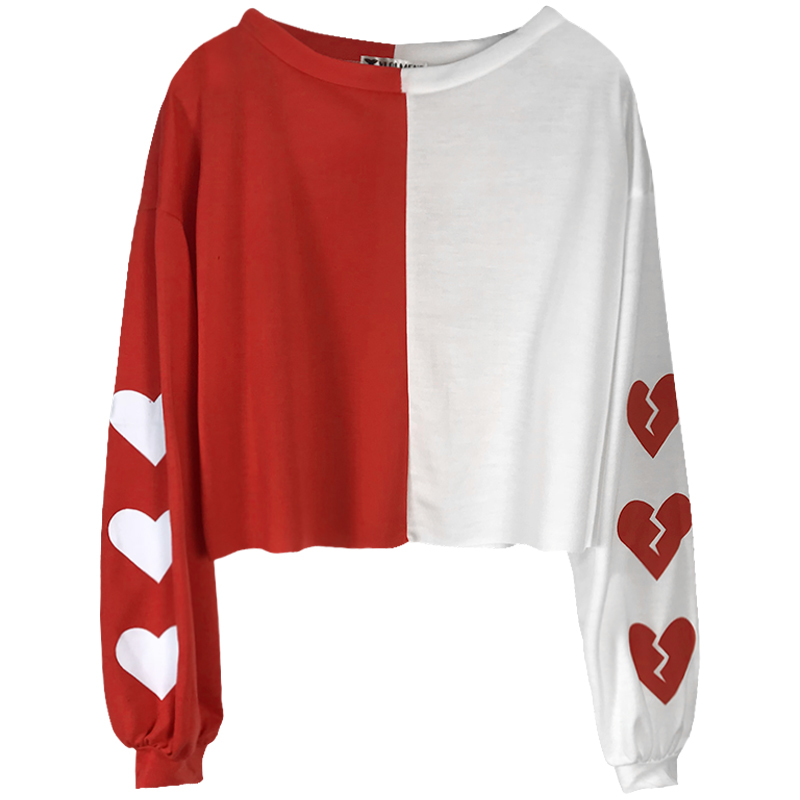 / 衣服2018新款流行外套拼色衛衣女秋韓版 寬松 百搭 長袖短款上衣