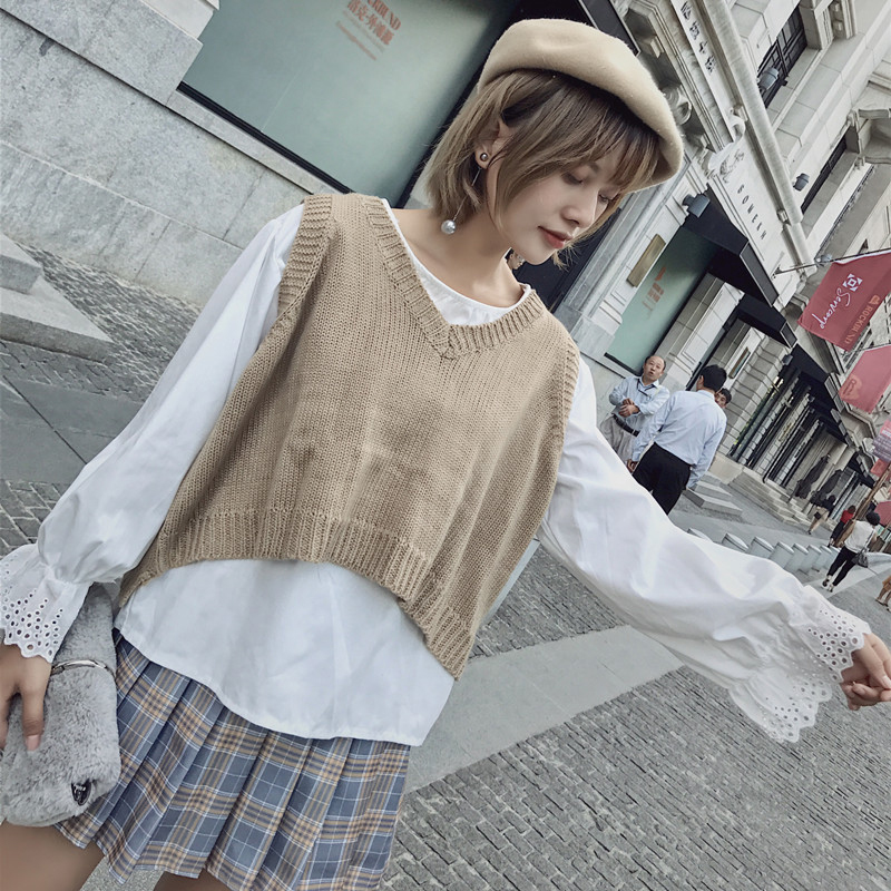 / 秋季新款女裝寬松顯瘦百搭套頭短款無袖外穿針織毛衣背心坎肩馬甲