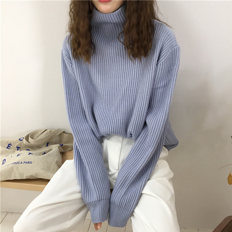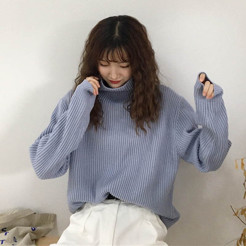 秋冬女裝2018新款韓版高領毛衣學生百搭針織外套流行寬松長袖上衣