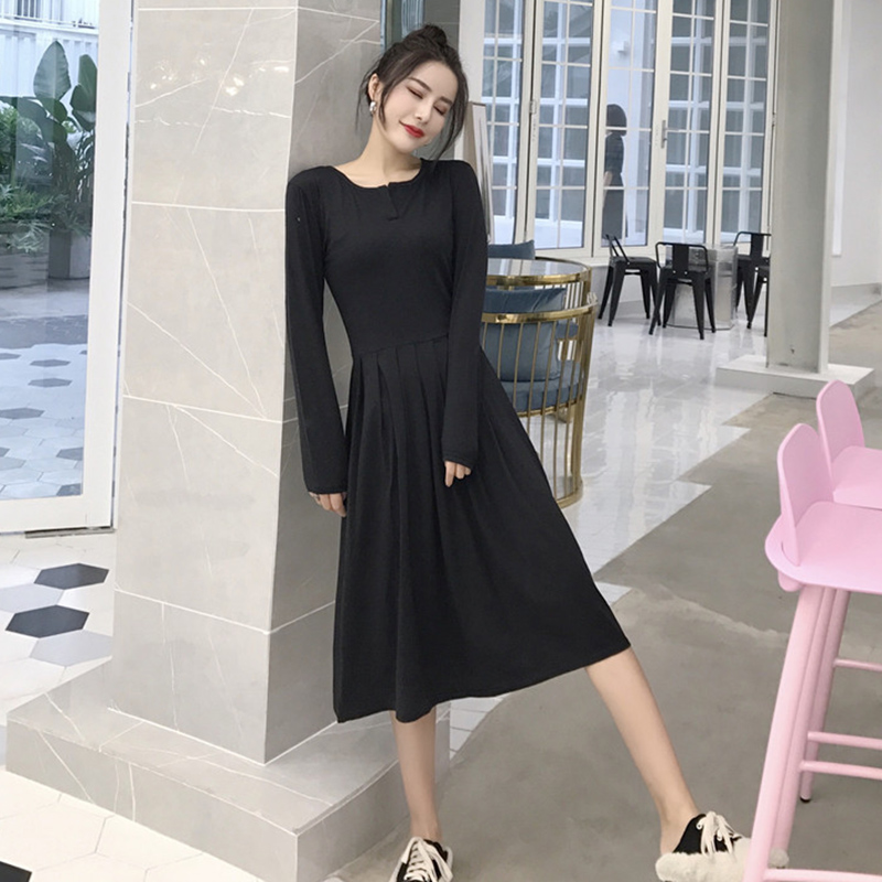 白色針織毛衣|黑色連衣裙