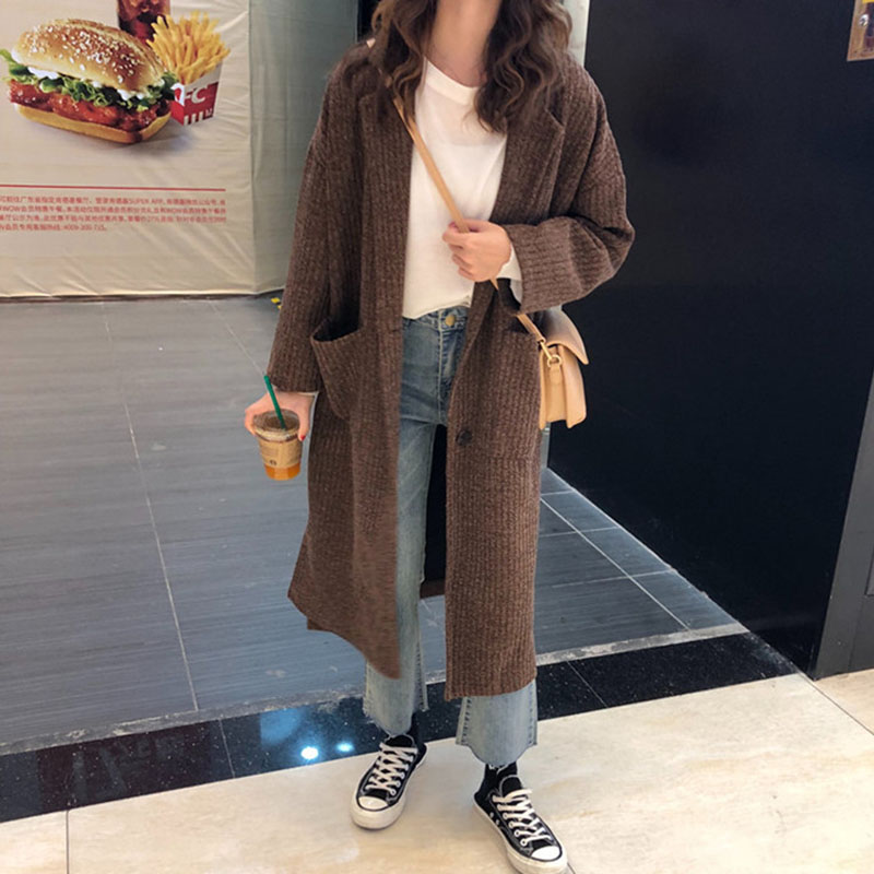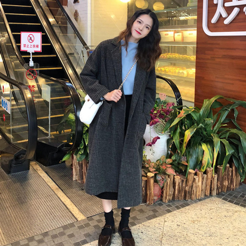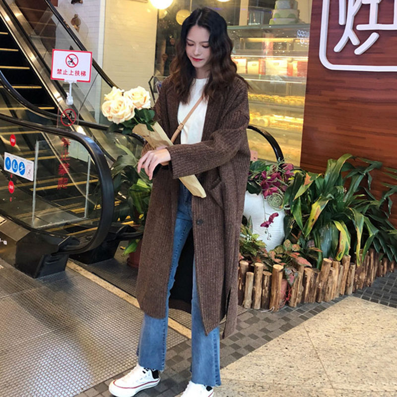 慵懶風中長外套秋裝女2018新款韓版港風寬松開叉上衣學生休閑開衫
