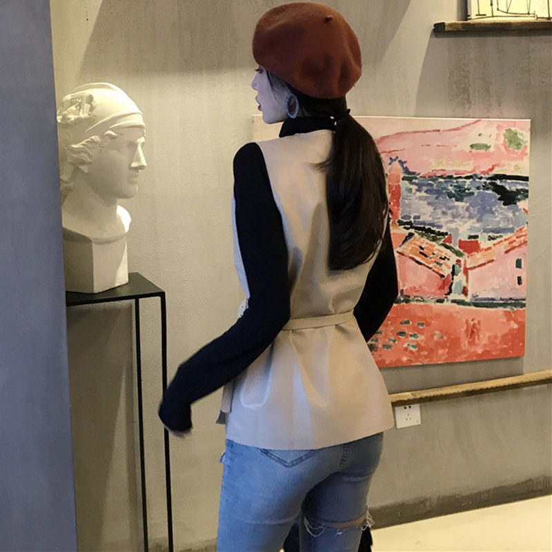 / 時尚兩件套高領外套秋女2018新款女裝長袖打底衫上衣無袖皮馬甲潮