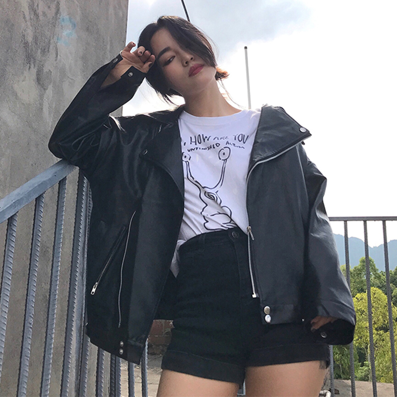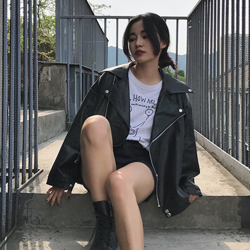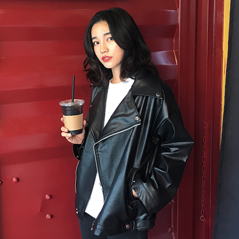 街頭帥氣機車外套秋裝女2018新款韓范港風黑色pu皮夾克寬松上衣潮