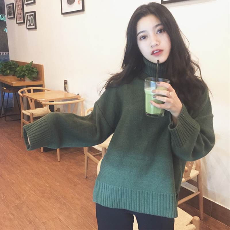 慵懶風高領毛衣外套女秋冬裝2018新款韓版寬松下擺開叉長袖針織衫