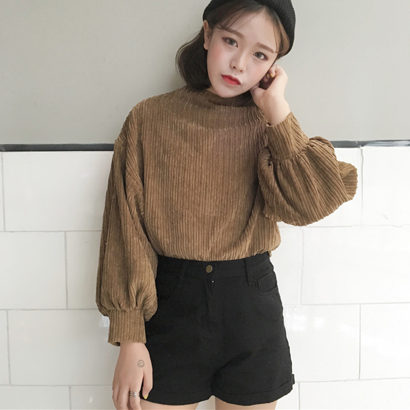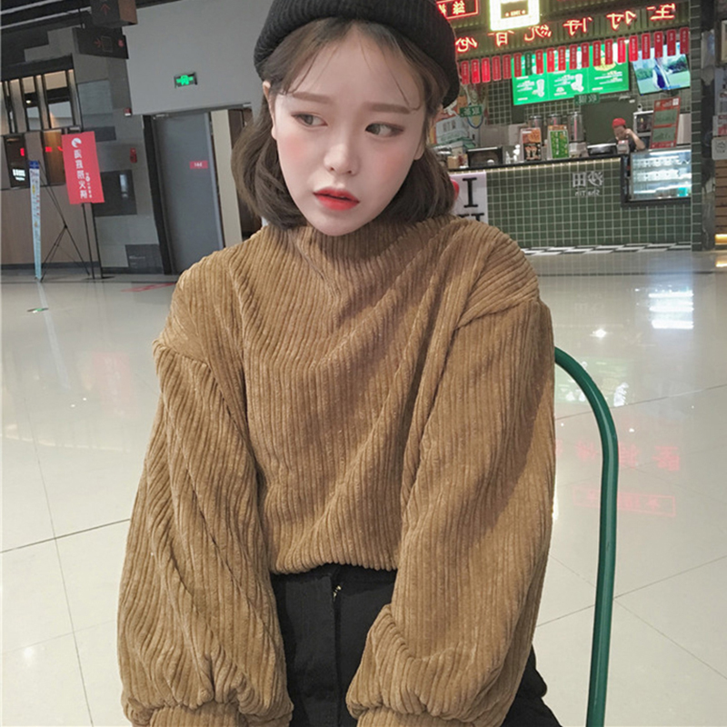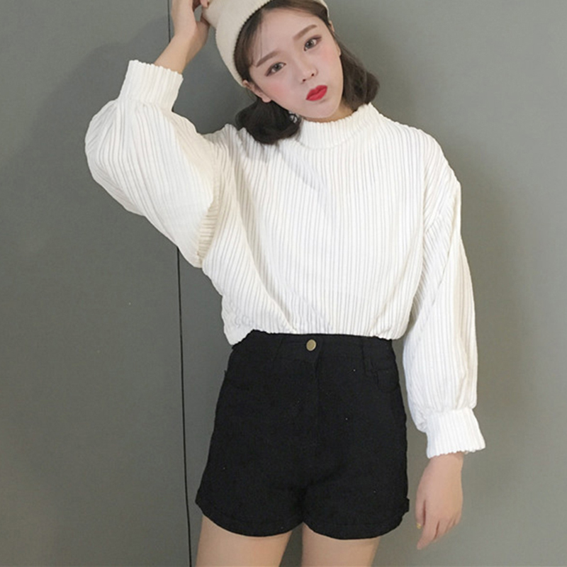 / 秋裝女新款復古港味寬松蝙蝠長袖上衣簡約慵懶純色半高領短T恤潮