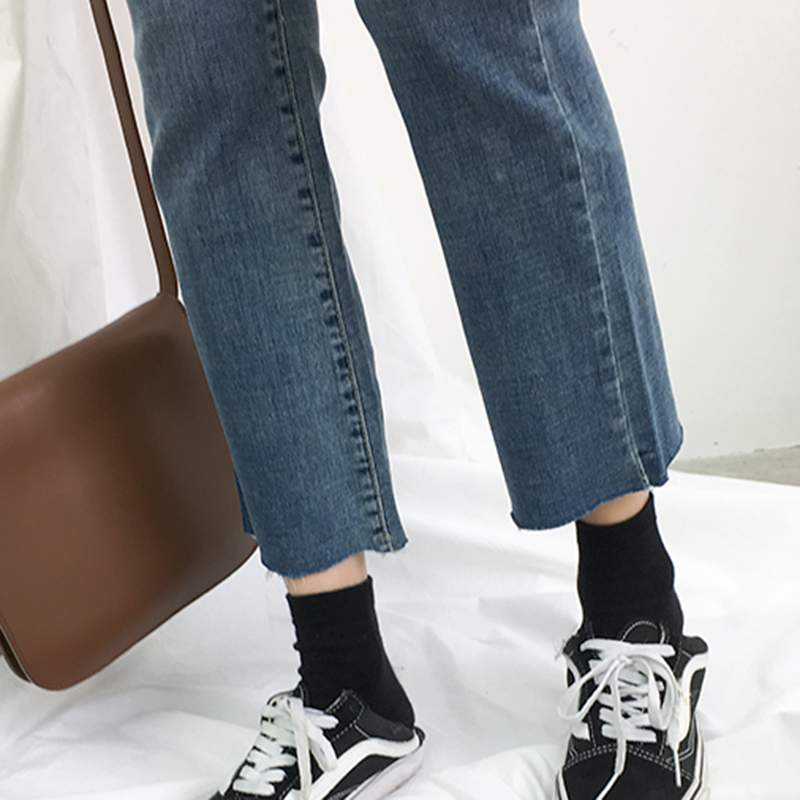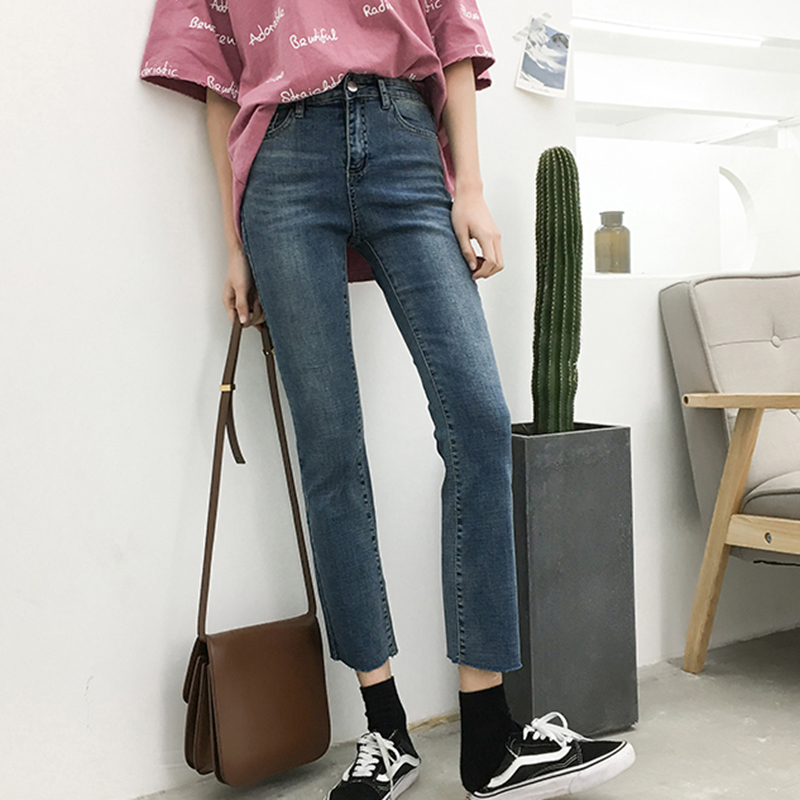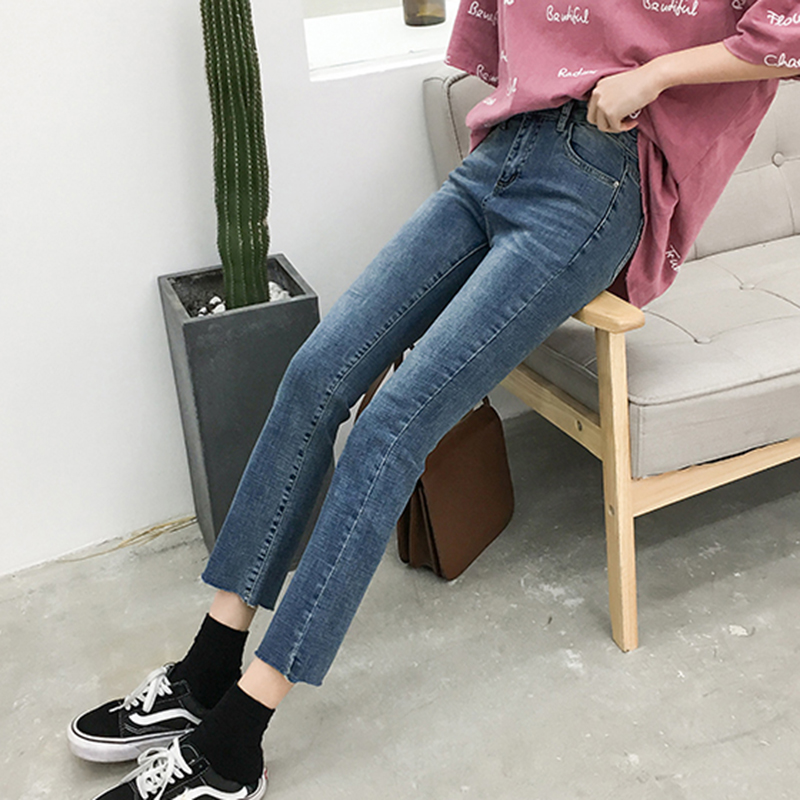 / 個性撕邊微喇褲潮秋裝女2018新款學生時尚牛仔褲高腰顯瘦九分褲子