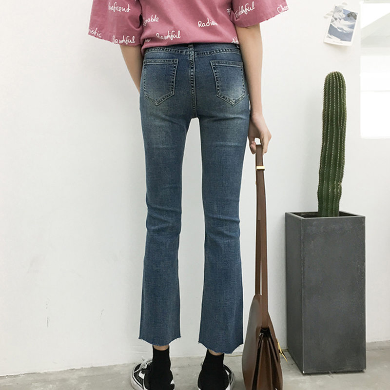 個性撕邊微喇褲潮秋裝女2018新款學生時尚牛仔褲高腰顯瘦九分褲子