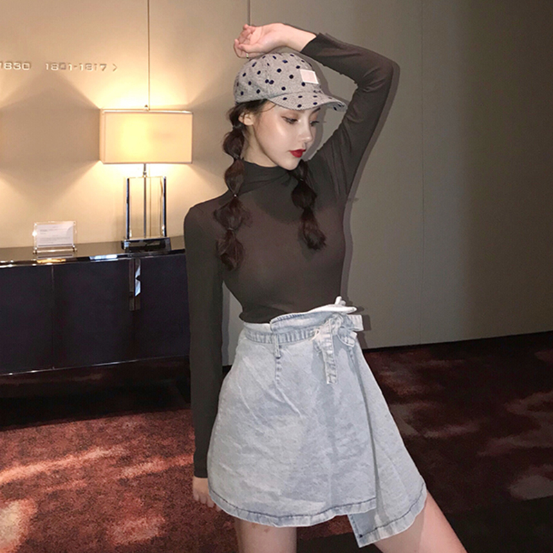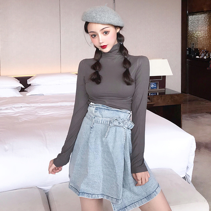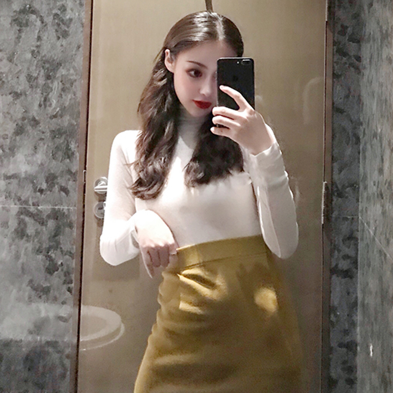 簡約純色高領T恤秋裝女2018新款港味修身顯瘦打底衫氣質長袖上衣