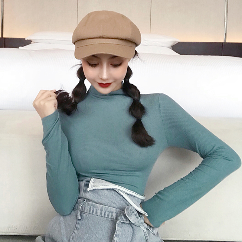 / 簡約純色高領T恤秋裝女2018新款港味修身顯瘦打底衫氣質長袖上衣