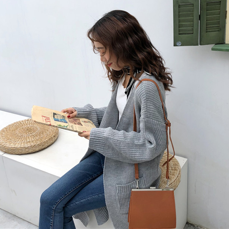 女裝秋2018新款寬松長袖毛衣外套開衫女學生港味復古休閑中長上衣