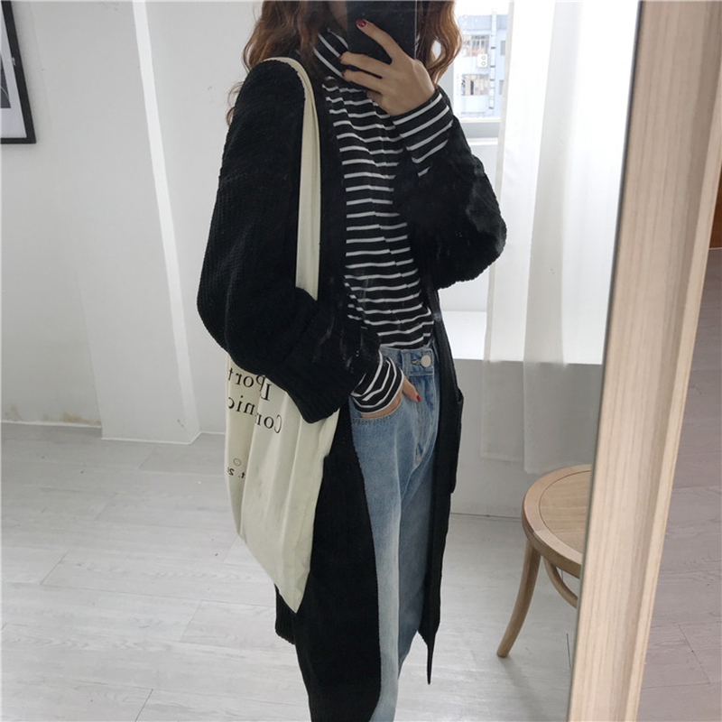 / 女裝秋2018新款寬松長袖毛衣外套開衫女學生港味復古休閑中長上衣