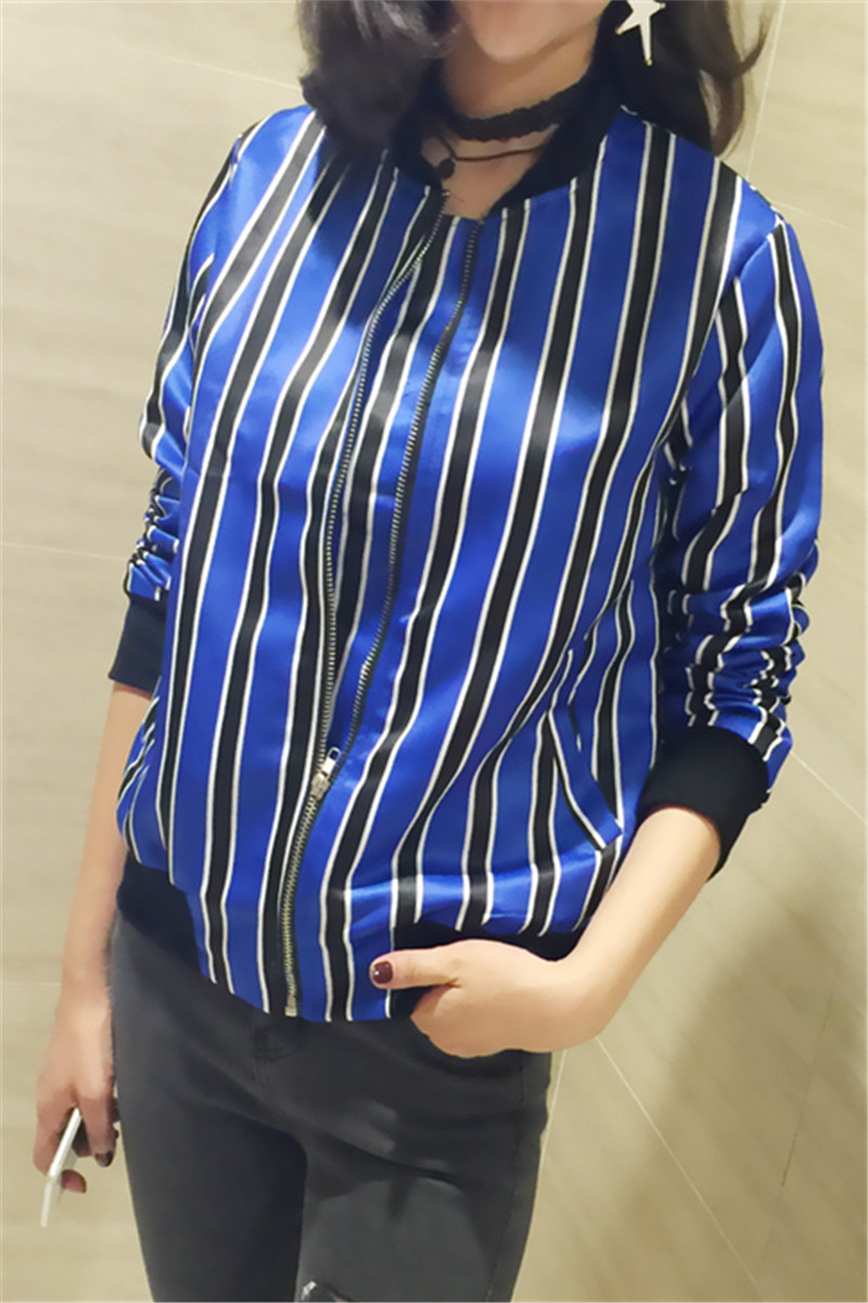 韓國chic秋冬款休閑條紋撞色氣質情侶裝長袖拉鏈棒球服外套女
