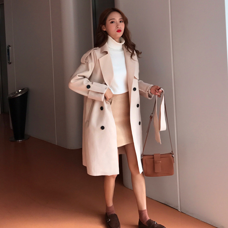 呢子毛呢大衣新款女冬2018寬松顯瘦中長款雙排扣風衣學生流行外套