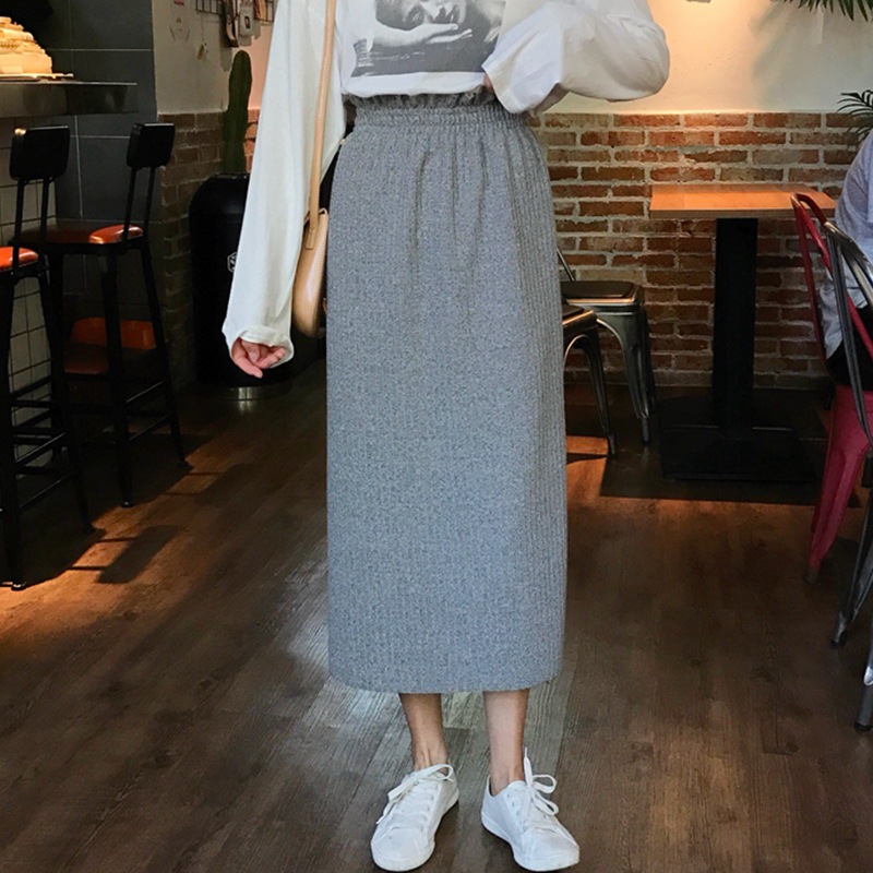 后開叉針織a字半身裙女秋裝新款氣質修身顯瘦花苞高腰一步包臀裙