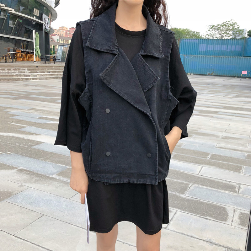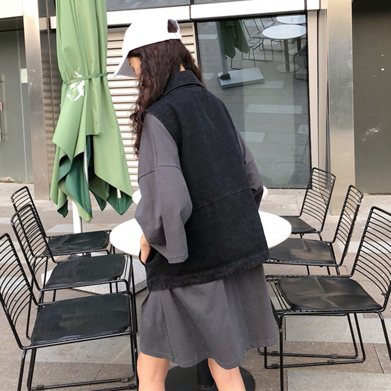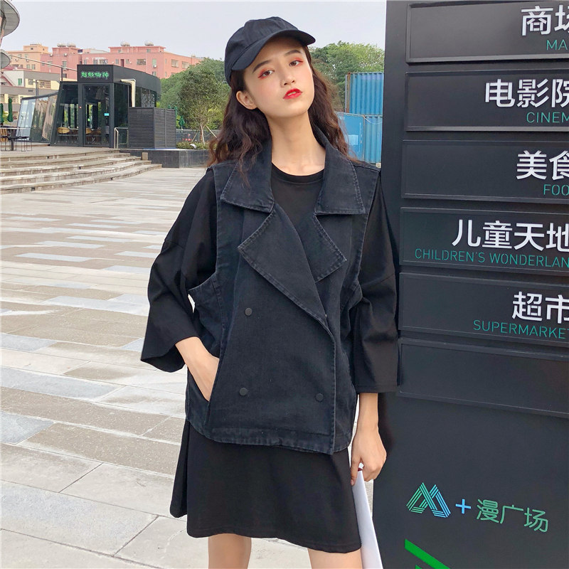 兩件套裝秋季2018新款韓版寬松上衣+無袖牛仔馬甲時尚學生套裝女