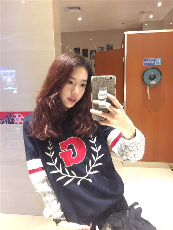 / 秋裝新款韓版百搭寬松顯瘦女裝字母印花圓領套頭長袖衛衣上衣