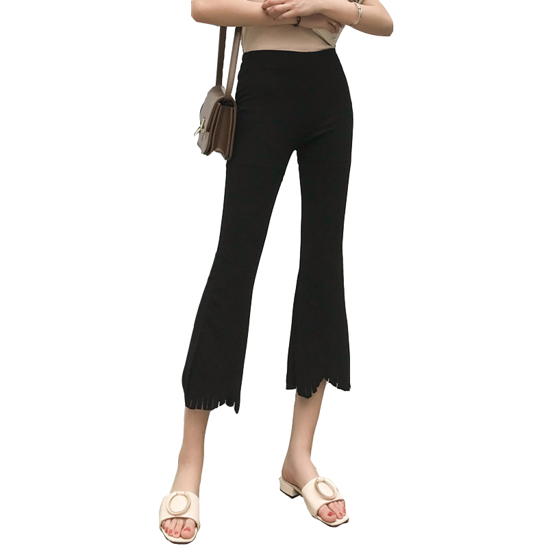 休閑褲女夏2018新款韓版女裝學生百搭純色高腰顯瘦顯腿長微喇叭褲